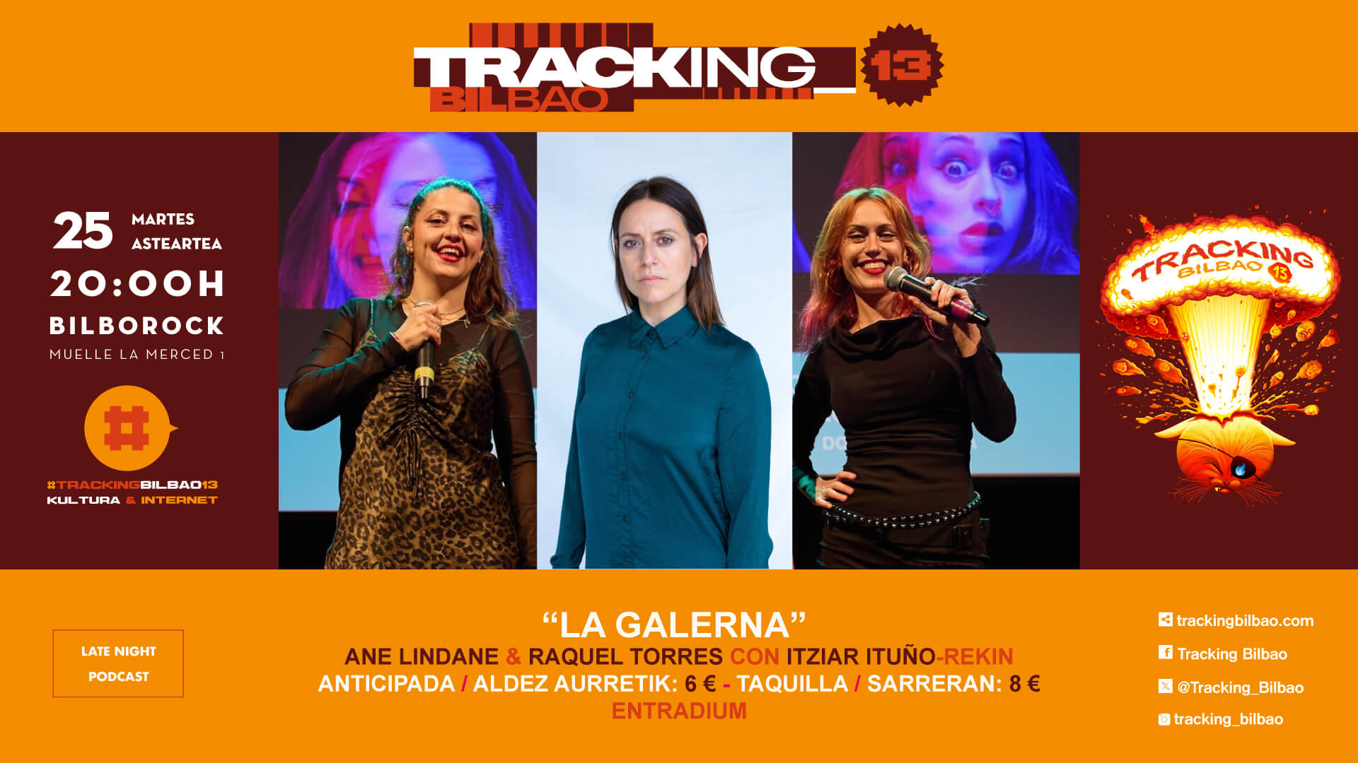 Azaroak 25, asteartea 20:00 Bilborock: “La Galerna” zuzeneko Late Night podcast-a Ane Lindane, Raquel Torres eta Itziar Ituñorekin.
