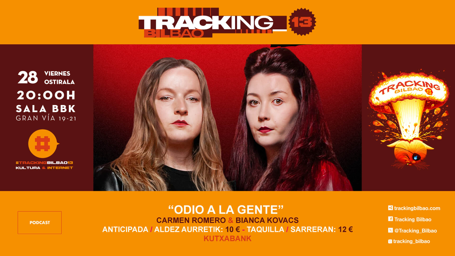 Viernes 28 noviembre 20:00 h en Sala BBK: Podcast “Odio a la gente” con Carmen Romero y Bianca Kovacs.